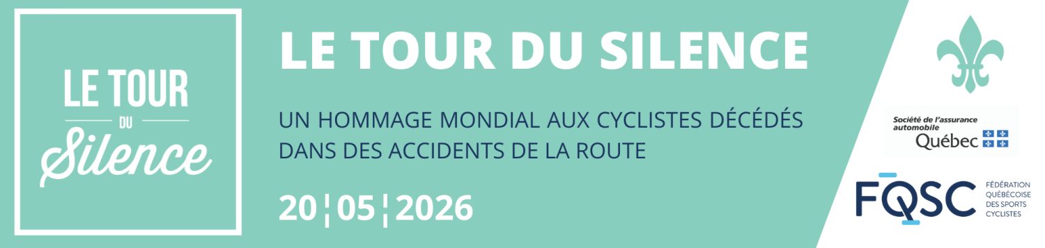 Communiqué de presse MERCREDI, 1 MAI 2024 Deux semaines avant l’édition 2024 du Tour du Silence, mercredi 15 mai en soirée. Un événement gratuit, et ouvert à tous ! Seules conditions : avoir un vélo, et porter son casque ! Avec le mandat d’assurer la coordination et la promotion du Tour du Silence au Québec depuis maintenant 14 ans, la Fédération québécoise des sports cyclistes … Continuer la lecture de 22 VILLES PARTICIPANTES POUR L’ÉDITION 2024 DU TOUR DU SILENCE !